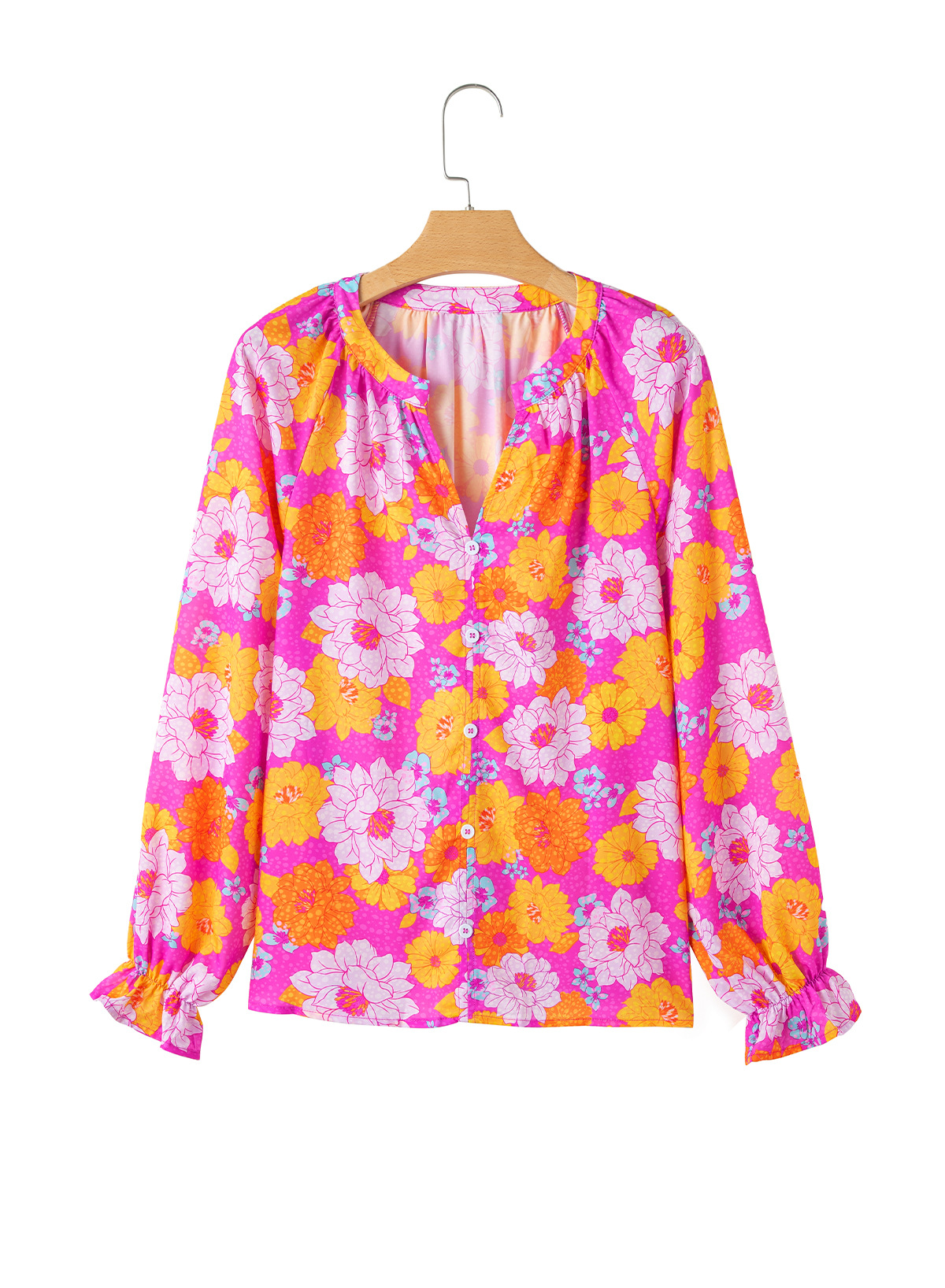 Casual V-Neck Lantern Sleeve Chiffon Pullover SY-LC25128446