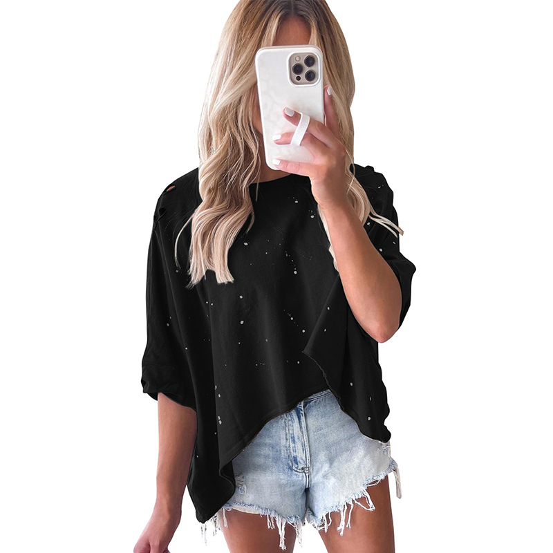 Ripped Hollow-Out High-Low T-Shirt SY-LC25219135