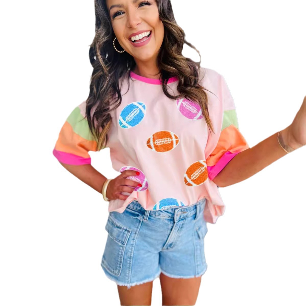 Rugby Print Loose Short Sleeve T-Shirt SY-LC25226410