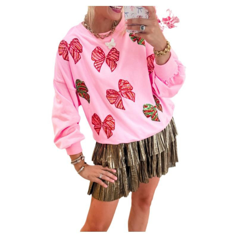 Sequined Patchwork Christmas Bow Sweatshirt SY-LC25318882