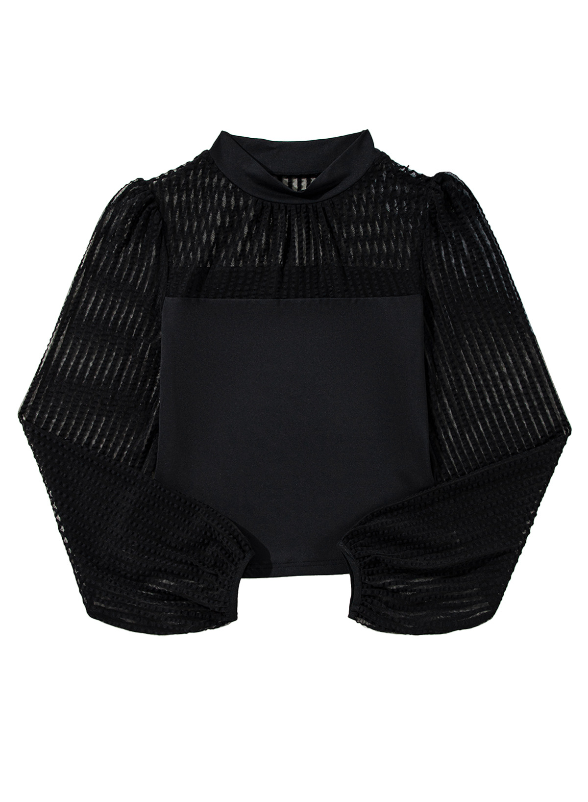Solid Color Mesh Stitching Chiffon Shirt SY-LC25128291